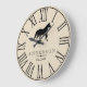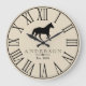 Giddy up! Decorate your horse, western, ranch, or mid-west themed room with this clock. This rustic black horse silhouette round clock boasts a neutral taupe print background for added versatility. Personalized with your family's name for a custom decor look.