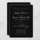 Gold swash calligraphy writing against stark black highlights this customizable wedding invite.