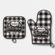 Rustic Black & White Buffalo Plaid Custom Kitchen Oven Mitt & Pot Holder Set