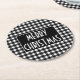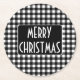 Rustic Black & White Buffalo Plaid Merry Christmas Round Paper Coaster