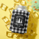 Create a personalized can cooler or coozie featuring rustic black and white buffalo check plaid and an image of forest pine trees in the woods with your custom text in white (shown with NAME FAMILY CABIN and year established date). All text is editable. Ideal for a family cabin, mountain lodge, lake house or vacation rental property. ASSISTANCE: For help with design modification or personalization, transferring the design to another product or if you would like coordinating items, contact the designer BEFORE ORDERING via the Zazzle Chat MESSAGE tab below or email makeitaboutyoustore@gmail.com.