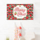 Looking for a berry first birthday banner? Look at our Rustic Black White Stripes Berry First Birthday Banner! It features digital hand-drawn watercolor of pink, red strawberries pattern, black and white stripes, white flowers, digital faux gold effect, and leaves. Perfect for a strawberry 1st birthday party , setting the tone for a joyful and colourful day. Beautiful berry first birthday decorations!