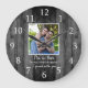 Rustic Black Wood Wedding Anniversary Love Photo Large Clock