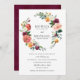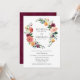Les invitations à un mariage floral sophistiqué comprennent une couronne de roses d'aquarelle, de chrysanthes et d'autres fleurs blanches au feuillage botanique vert luxuriant et de feuilles dans différentes nuances de vert, encerclant vos noms Personnalisez avec vos détails mariages sous. Un choix élégant mais rustique pour les mariages en toute saison d'automne ou d'hiver ou pour les mariages de la campagne. Carte inversée à une couleur bordeaux veloutée. Ce design fait partie d'une collection de mariages "Rustic Bloom" et d'accessoires. Pour une demande personnalisée, veuillez nous contacter à l'aide du bouton ci-dessous ou écrire un email à l'adresse suivante : citronelladesign@gmail.com Couleur : marsala, bordeaux, jaune, ivoire, pêches, rose roux et différentes nuances de vert,