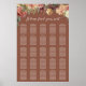 Wedding guest seating chart features your names in elegant calligraphy script script lettering, with your wedding date and guest table assignments beneath. Large size provides space for up to 25 tables. Designed to mach our Rustic Bloom wedding and event collection, with watercolor florals and foliage in muted autumn earth tones.