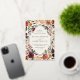A showstopper in rich earth tones, this elegant floral wedding invitation or fall or winter weddings features your details nestled inside an elongated gold foil hexagon surrounded by watercolor roses, mums and greenery in rustic autumn colors including peach, ivory, blush, burgundy and green.