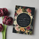 Elegant floral wedding invitations or fall or winter weddings feature your details encircled by watercolor roses, mums and greenery in rustic autumn colors including peach, ivory, blush, burgundy and green, with sleek gold foil trim on a rich off-black background. A modern and elegant design for rustic chic weddings in the fall or winter months.