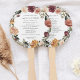 Our rustic chic wedding program fan features your ceremony details in elegant lettering, encircled by a wreath of watercolor flowers in rich autumn hues. Reverse side lists the members of your wedding party with easily editable text fields. Coordinates with our Rustic Bloom wedding invitation collection. Use the template fields to add your ceremony and bridal party information, and then click "Customize It" to reposition elements if needed. Need help? Contact me via the "Ask this Designer" link on this page.