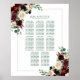 Vibrant hand-painted floral wedding reception, party, or shower seating assignment chart for 8-10-12 top tables featuring watercolor corner wreath frame drops of burgundy, blush and navy flowers embellished by botanical laurel and deep hunter forest green accents. From the "Boho Bloom" collection, this layout incorporates rich Bohemian wildflower bouquets with radiant flower blooms and eucalyptus greenery foliage. For other colors or matching products, please visit the JustFharryn Zazzle store, or contact the designer, c/o Fharryn@yahoo.com All rights reserved. #bohochic #zazzlemade