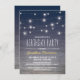 Adult mens birthday invitations featuring a rustic wooden blue ombre background, harbour deck string twinkle lights and modern wording.