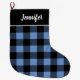 Rustic Blue and Black Buffalo Check Monogram Large Christmas Stocking