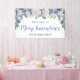 Rustic and elegant. White roses, blue flowers and lots of greenery, leaves and vines join together to create a beautiful floral border along the top of this 60th birthday banner.