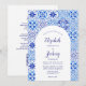 Rustic Blue Arch Portuguese Tile QR Code Wedding Invitation
