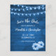 Rustic Blue Daisy String Lights Save the Date Announcement Postcard