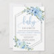 Winter blue floral boy baby shower invitation with silver glitter geometric