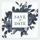 Rustic Blue Floral Save the Date Wedding Square Sticker