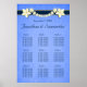 Rustic Blue Floral – RBFL100 © Sunny Mars Designs. Customizable small formal custom vintage rusty blue elegant wedding table seating charts with dark blue ribbon border, modern pretty white flowers against blue old parchment paper background.