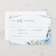 Rustic BLue Flowers Silver Geometric Frame Wedding RSVP Card
