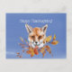 Rustic Blue Fox Autumn Foliage Thanksgiving Holiday Postcard