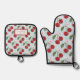 Rustic Blue Gingham And Cherries Monogram Oven Mitt & Pot Holder Set