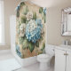 Accent the decor of your bathroom with a elegant rustic style shower curtain. This botanical curtain features a watercolor illustration of blue and white hydrangeas, with green leaves on a faux burlap background. The soft color palette and charming design will add a touch of rustic elegance to any bathroom, transforming it into a peaceful and inviting space.