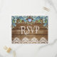Romantic and Rustic! Beautiful watercolor blue hydrangea, heart and lace RSVP Card.Check out our Rustic Blue Hydrangea and Lace Wedding Collection for matching products!