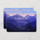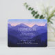 This simple, minimalistic, and modern wedding design features a modern font against a dreamy illustration of a blue mountain landscape. The card is encouraged to be filled out with a white ink pen.