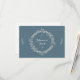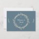 A rustic outlined floral wreath highlights the happy couple's names on this rustic but simple wedding reply card. Natural elements highlight the names of the couple against a slate blue background. Response text prints on the reverse. Available in alternate colours with matching products.