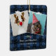 Rustic Christmas country 2 pets photos with traditional navy blue and black plaid flannel pattern and snow with a mistletoe. all the colours are editable