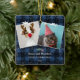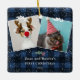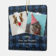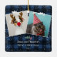 Rustic blue plaid flannel mistletoe snow 2 photos ceramic ornament