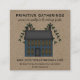 This primitive business card features a blue country saltbox house on Kraft.