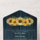 Invite guests to your upcoming wedding with a Rustic Blue Sunflower All in One Wedding Invite. Invite design features a rustic wooden background with an elegant bouquet of sunflowers. Personalize with the groom and bride's names along with the wedding date and location. Additional wedding stationery available with this design as well.