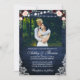 Rustic Blue Wedding Floral Wood Lights Lace Photo Invitation