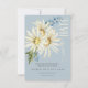 Introducing our charming wedding save the date card, designed to add a touch of rustic elegance to your special day. This exquisite design features a soft dusty blue background, complemented by a delicate white text box outlined with a thin floating frame. Crowned by a stunning spray of watercolor white and yellow daisies and delicate blue wildflowers, this design sets the perfect tone for your celebration. The soft hues and rustic design capture the essence of a countryside romance, making it an ideal choice. Created by Simply Farmhouse Press.
