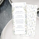 Elegant botanical greenery rustic blue floral spring or summer garden wedding menu cards.