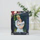 Rustic Wedding Blue Wood String Lights Lace Photo Save the Date Postcard includes Watercolor Floral burgundy roses, pink roses and greenery.