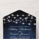 Rustic Blue Wood String Lights and Lace Wedding All In One Invitation with RSVP Card
