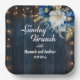 Rustic Blue Wood White Floral Sunday Brunch Paper Plate