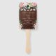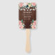 Keep your guests cool and stylish with this rustic wedding program hand fan, featuring romantic blush pink florals and string lights against a wood background. Perfect for outdoor and barn weddings, this fan combines elegance with a touch of country charm. Customize with your ceremony details for a memorable keepsake that complements your rustic or garden wedding theme. Ideal for summer weddings, this hand fan adds both function and beauty to your special day.