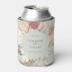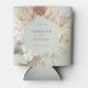 Beautiful rustic boho-chic dried palm fronds, roses and orchid geometric frame on silver sage green colour background, personalized can cooler. Designed to match our Bohemian Oasis Wedding Collection.