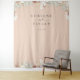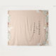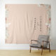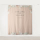 Beautiful rustic boho-chic dried palm fronds, roses and white orchid frame on pink sand colour background, personalized wedding photo backdrop tapestry. Designed to match our Bohemian Oasis Wedding Collection.
