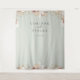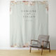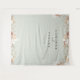 Beautiful rustic boho-chic dried palm fronds, roses and white orchid frame on silver sage green colour background, personalized wedding photo backdrop tapestry. Designed to match our Bohemian Oasis Wedding Collection.