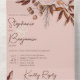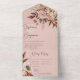 This design features boho bouquets of tan, brown, cream, and soft blush on a blush background. Personalized All-In-One invitations are a unique combination of both a beautifully printed custom invitation with an easy to tear off perforated RSVP postcard. And they are so easy to use! You simply fold, then seal the back flap with the three included clear stickers, and mail. And when your guests receive your custom invite, they just tear the perforated RSVP Card off and drop it back in the mail to you!