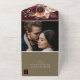 This rustic all-in-one wedding invitation features a stunning floral arrangement of burgundy, peach, and ivory blooms with pampas grass and greenery, perfect for fall or boho-inspired weddings. The foldable design includes a built-in RSVP and a personalized photo and return address on the back flap. A romantic and eco-friendly choice for couples seeking both style and convenience.