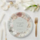 Beautiful rustic boho-chic dried palm fronds, roses and orchid geometric frame on silver sage green colour background, personalized paper plates. Designed to match our Bohemian Oasis Wedding Collection.