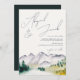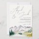 A hand-painted watercolor Aspen Colorado Mountain Wedding Invitation. The cool hues of grey and green create a tranquil backdrop for a mountain landscape, adorned with elegant evergreen trees. The invitation features a stylish script font, adding sophistication to the rustic bohemian charm. Perfect for winter , spring, weddings, destination celebrations, and country skiing rustic themes, this invitation sets the tone for a memorable and enchanting union.