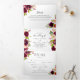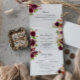 This rustic boho colourful floral trifold wedding invitation is perfect for a simple wedding. The design features pink, blush, red, burgundy and bordo watercolor flowers with green foliage.