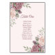 This elegant table number card features painted watercolor roses in shades of dusty rose on a light pink background. This is part of a matching wedding suite that can be fully personalized.