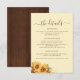 Elegant rustic boho floral watercolor sunflowers ivory butter yellow and brown barn wood wedding guest information details invitation insert card with a simple handwriting typography script.