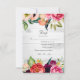 Boho floral wedding rsvp featuring peony and anemone flowers, greenery and feathers in accents of burgundy and pink customizable to your specifics. Ideal for any given theme or garden wedding. The QR code on the reverse directs to your wedding site where people can learn more.